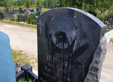 В данном заказе нам предстояло заменить теневой портрет покойного прямо на кладбище, обойдясь без демонтажа и транспортировки надгробья. Действительно, фотография, выгравированная на памятнике, была, во-первых, сомнительного качества, а, во-вторых, на ней с трудом угадывались черты лица покойного.